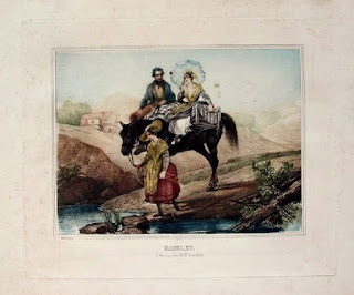 La cacoletière est une femme dont la profession est de promener les touristes, assis dans une sorte de panier à dossier, muni de coussins et fixé aux flancs d'un âne ou d'un mulet.